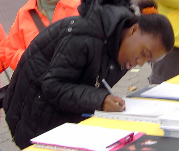 的儿童们的关注,法轮功学员在荷兰第二大城市--鹿特丹(Rotterdam)街头举办了真象图片展,用图片展的形式揭示中共对法轮功的迫害给儿童带来的悲惨遭遇。人们纷纷签名声援,希望为营救这些处境艰难的孩子们尽一份力量。
