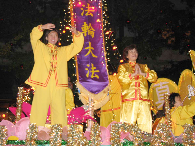 此次游行,为把大法的美好留给观众,学员把花车设计成漂亮的法船,在实施中工作量较大。法轮功学员陈女士说:“我们的想法很简单,就是想让看到过我们的队伍的人们,在心里留下‘法轮大法好’这个想法,这个印象。当然,背后的工作量是很大的,但都是学员自愿的利用自己业余的时间、下班后的空闲时间在做。”