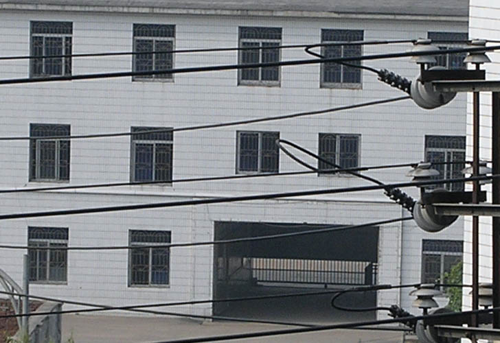 说明:上面照片中,正面的三层楼房就是监舍楼,房间窗户被铁栅栏封闭。监舍区大门从监舍楼底下穿过,大门一侧有很长的铁栅栏通道,来回折曲,既供人员出入又防止关押人员突然走脱。