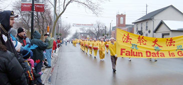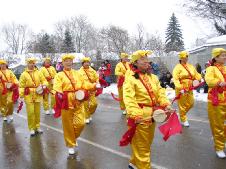万锦市的游行是在雪中進行的。约100个团体、2000多人参加了游行表演。法轮功学员作为唯一的华人团体首次参加了此次活动,并获得仅设的5个奖项中的“最佳游行队伍一等奖”。