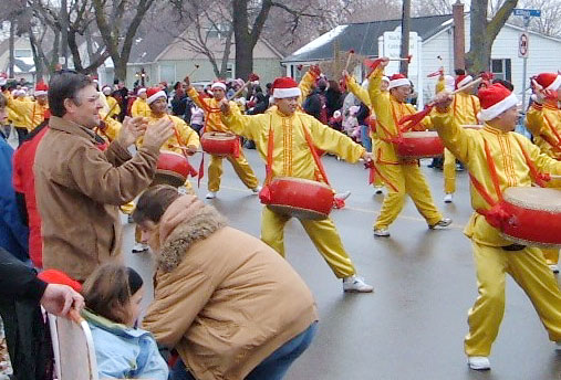法轮功对密西沙加市民来说已不陌生。沿途不少观众向学员挥手致意并祝节日快乐。