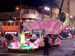 游行队伍包括鼓号乐队、马术队、花车、市政名流和好莱坞明星乘坐的各式各样的古董车,洛市消警局也派出了摩托骑警队和消防车队。圣诞老公公则在沿途向小朋友们发送小礼物,向观众致送节日的问候。