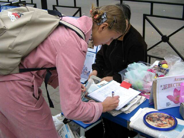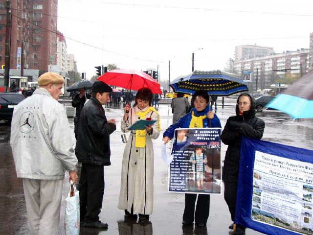 人们不断的停下脚步向发传单的学员们提问题,学员们抓住机会深入讲清什么是法轮功以及目前在中国仍持续发生的迫害情况,交谈中也在清除着一些俄罗斯人头脑中残留的邪*党-文化造成的毒素。一些来自于其它前苏联国家的民工也热心的听真象。图片上展示的中国法轮功学员所受到的酷刑折磨和受迫害法轮功儿童的图片激起了他们的同情。