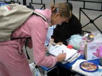 10月15日和22日,学员们连续两周利用周末的业余和课余时间在居民区的地铁站附近开展活动。天虽然下着雨,人们行色匆匆,但大法学员仍顶着秋雨向过往行人发送真象传单。