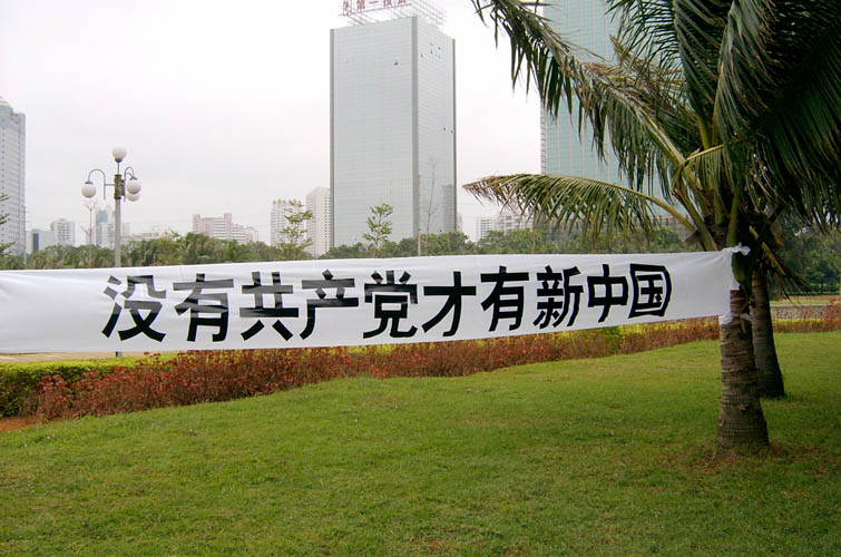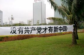 2005年10月国殇期间,海口万绿园出现了“没有共产党才有新中国”的横幅。海南公安政法系统的极度恐慌。