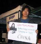 ![]() 学员在集会现场发放法轮功真象资料 | ![]() 手持高蓉蓉被迫害图片的学生呼吁停止迫害 |