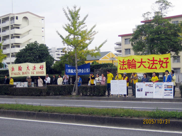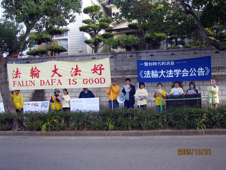 结束了在长崎中领馆前的宣读公告活动,部份学员又赶往驻福冈中国领事馆,与那里的法轮功学员们一起向中领馆宣读公告。长崎警察署的警察对学员们表示:“你们太辛苦了。我们支持你们,加油吧!”