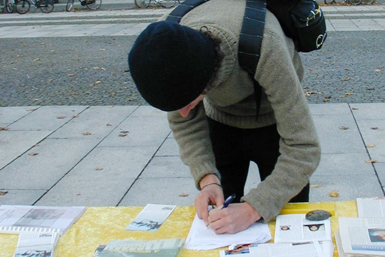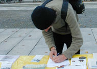 ![]() 停下匆匆的脚步,了解真象 | ![]() 明白真象的人们签下自己的名字声援法轮功 | ![]() 阅读真象展板 |