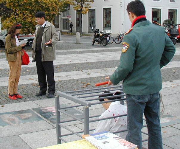 许多西门子公司的员工包括一些高级部门的管理人员以及到西门子公司办事的工商界人士从展位旁路过,一些人停下匆匆的脚步,仔细观看图片展。不少人接过学员递上的传单和专为工商界准备的真象资料。