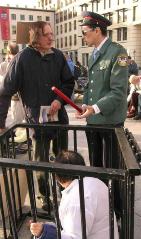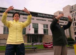 这里的中国游客虽然没有科隆(Cologne)大教堂前多,但从他们的反应中同样能看到中国人内心的触动,据表演真人模拟酷刑的朱女士说,大多数中国游客来到她跟前,都是默默的看,一些人还默默的拿了学员送上来的法轮功真象资料,从脸上的表情来看,有的人震惊的说不出话来。