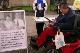![]() 震惊的人群 | ![]() 呼吁营救半年前从德国回中国的姜仁政一家。姜目前被劳教,保外就医。 |