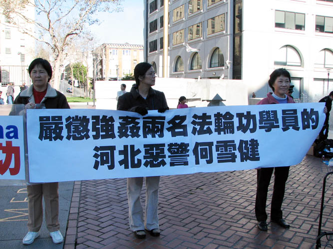 据法轮功学员张雪容博士介绍,当联合国酷刑专员到中国调查不到三天,在河北省涿州市东城坊镇派出所,就发生了穿制服的警察何雪健连续强奸两名女法轮功学员的惊人事件。11月24日晚,51岁的刘季芝和42岁的韩玉芝,被东城坊镇公安从家中绑架走;之后,她们在被非法审讯期间遭毒打;于次日下午,穿着制服、20多岁的公安何雪健,丧失人性,在所谓“执行公务”过程中连续强奸了刘季芝和韩玉芝。