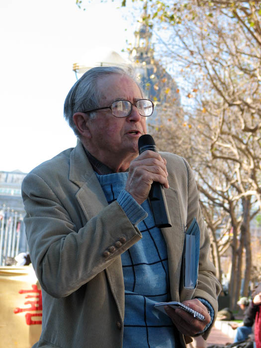 联合国协会圣塔克鲁斯分会的成员Jim Morley 说,今天是世界人权宣言发表第57周年,他和与会者重温了《世界人权宣言》。他特别指出,《世界人权宣言》第五条规定:任何人不得加以酷刑,或施以残忍的、不人道的和侮辱性的待遇或刑罚。