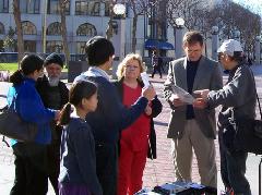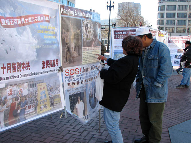 ![]() 路人在观看图片展板 | ![]() 路人签名支持反迫害 |