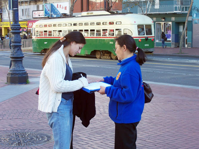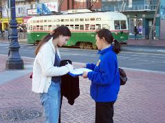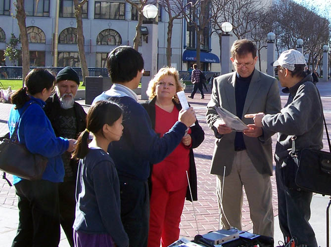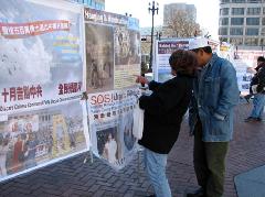 一位旧金山市民MIKE看到酷刑展后对学员说:“这种方式非常有效、非常好,给我留下了深刻的印象。你们一定要坚持做下去。”他说他在报上看到过有关法轮功的消息。他非常高兴能签名支持法轮功。