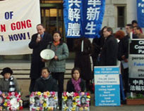 集会上,前来表达支持的欧盟人权委员会副主席(Vice President Human Rights Subcommittee of EP)、欧洲议员、英国保守党外交事务发言人查尔斯•唐诺克博士(Dr. Charles Tannock MEP),国会议员约翰•格根(John Grogan MP),英国前资深外交官瑟罗勋爵,英国剧作家敏特女士(Tinch Minter)和亲身经历中共迫害的法轮功学员等发了言。此外,大伦敦议会副主席布莱恩•考曼(Brain Coleman)因无法亲自前来,由在场法轮功学员代读了发言。