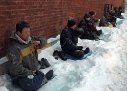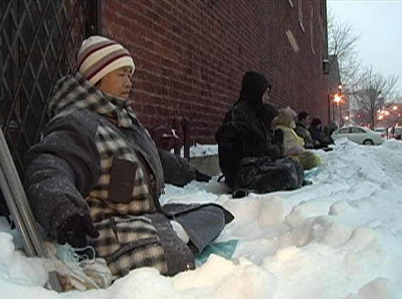 12月9日,芝加哥下了入冬以来最大的一场雪,据气象报道,9日午后3小时之内芝加哥市区的积雪就已经达到12厘米。10日大雪依旧不停,而大芝加哥地区的法轮功学员们照常来到中领馆前,在厚厚的积雪当中铲出一小块空地,炼功,发正念,并在风雪中向过往的民众和车辆传达学员们的心声,强烈抗议中共当局对法轮功持续六年的