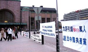 一位老年芬兰女士也问了同样的问题:你们在做什么?当明白是传·九·评*,声援退!党!时,她说,其实芬兰人民都知道这些,关键是我们的政府和官员们应出来表态。