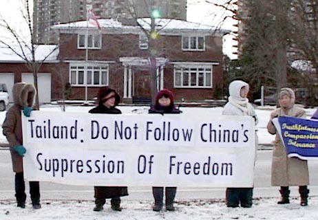 事情发生后,渥太华法轮功学员即与泰国驻加拿大大使馆官员打电话,要求会面;并于15日,在泰国大使馆前集会,强烈抗议泰国个别官员屈服于中共的压力,参与迫害法轮功学员的无理行为。