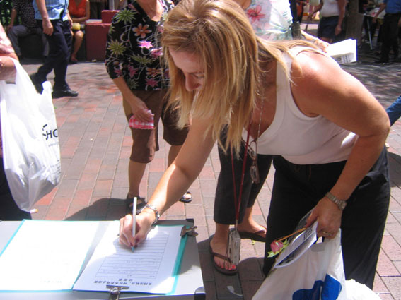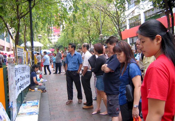 ![]() 闹市区民众为中共迫害法轮功恶行震惊 | ![]() 民众签名支持法轮功,抗议中共迫害法轮功 |