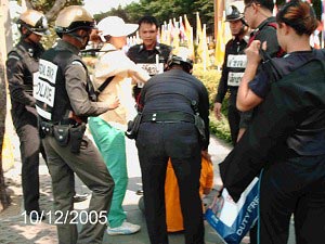![]() 泰国警察包围法轮功学员,随后粗暴拖走 |
