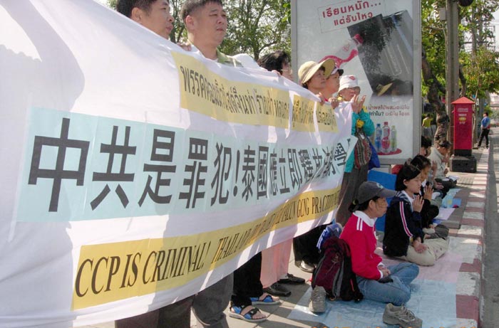 ![]() 泰国法轮功学员在中使馆前抗议中共侵犯人权 |