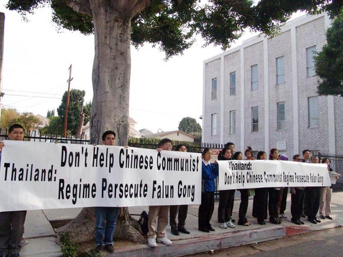 ![]() 洛杉矶部份法轮功学员在泰国领事馆对面抗议 |