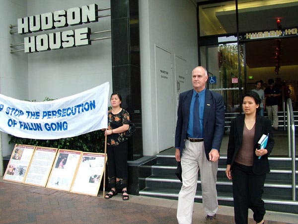 2005年12月16日中午,悉尼法轮功学员在泰国驻悉尼领事馆前召开新闻发布会,纽省法轮大法学会会长约翰•戴乐先生向泰国总领事递交公开信,就近日发生的泰警方在中共指使下公然侵犯法轮功学员的人权,并在15日逮捕了8名在中共驻泰国大使馆前和平抗议的法轮功学员的事件,表达了强烈的关注,呼吁泰国政府不要听命于中共,做迫害法轮功的帮凶,应立刻释放被关押的法轮功学员,允许泰国法轮功学员继续在中领馆前进行和平抗议活动。