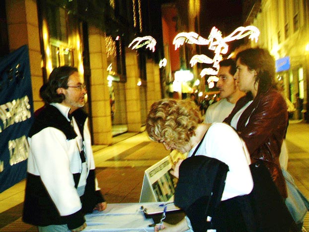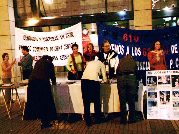 在人潮涌动的著名的特里安那商业街,人们被一幅幅揭露中共野蛮践踏人权、残酷迫害法轮功学员和其他宗教信仰人士的图片所震惊,并谴责中共的暴行,前来索要传单和《·九·评*共产党》专刊的人络绎不绝。当得知中国已经有超过610万人退出中共时,所有经过这里并了解了真相的人们毫不犹豫的签名声援。