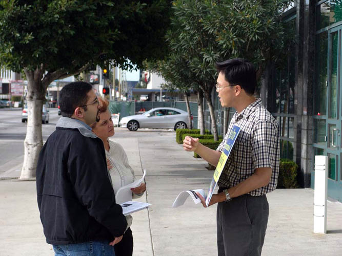 加州大学洛杉矶分校(UCLA)副教授吴英年等法轮功学员代表进入领事馆,把请愿信、《·九·评*共产党》和中共迫害法轮功的真相资料交给副领事Fernando Brun先生,并进行了友好坦率的交谈。Brun先生表示,他已经知道了法轮功学员在阿根廷被殴的事件,并关切的询问被殴学员的伤情。