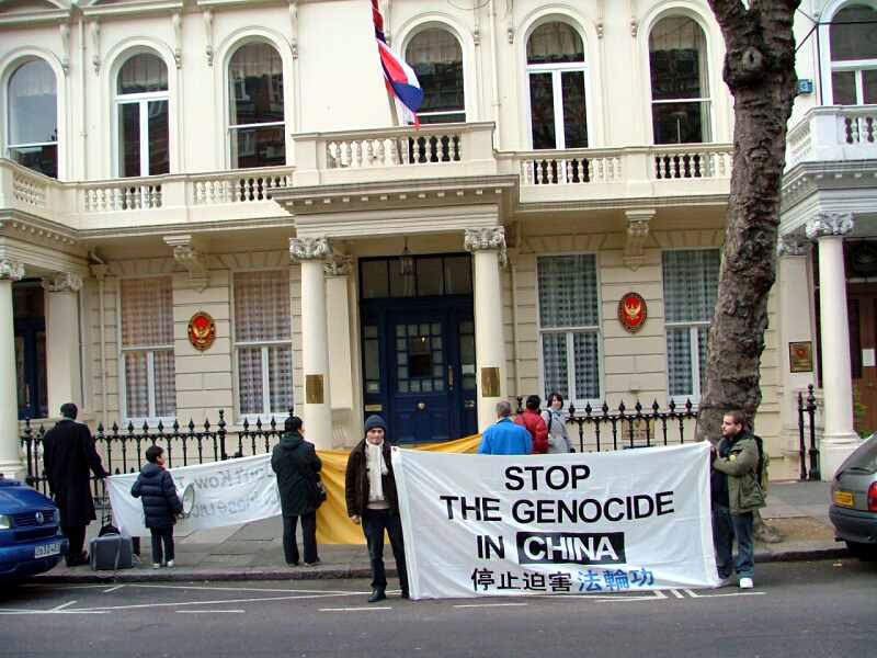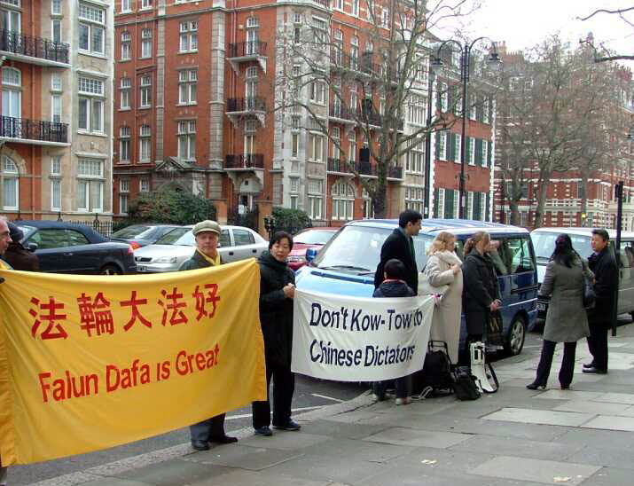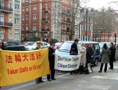 法轮功学员和法轮功之友协会成员于下午1:00 点来到泰国大使馆前,展开了印有“法轮大法好”,“停止迫害法轮功”,“不要向中国独裁者屈服”等字样的横幅,向路人发放法轮功的真相资料,宣读了公开信并递交给泰国大使馆。其间,不时有泰国使馆的工作人员和泰国公民从使馆的大门出来,学员们向他们讲述了最近发生的在中共大使馆的指使和煽动下泰国警察对法轮功学员人权的严重侵犯以及6年来中共对法轮功的残酷迫害。