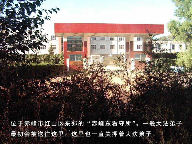 位于赤峰市红山区东郊的“赤峰市看守所”。一般法轮功学员最初会被送往这里,这里也一直非法关押着法轮功学员。