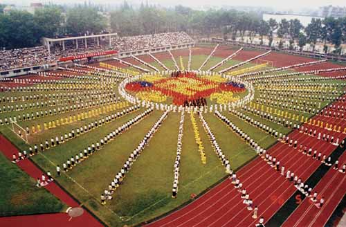 ![]() 1996年,武汉法轮功学员集体炼功,列队组成法轮图形 | ![]() 1996年,在贵州举行的法轮功修炼心得交流会 |