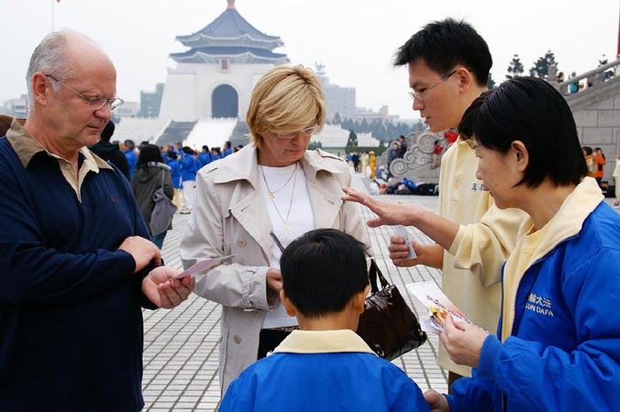 远从瑞典来台湾观光的一对夫妻,听到法轮功学员在中国遭受迫害的真相时,夫妻俩显得很凝重,主动要求签名呼吁早日制止这场迫害。