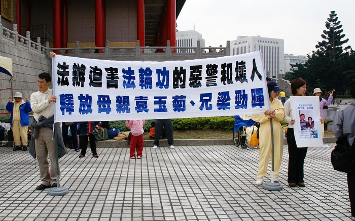 广场的一角是香港学员梁晓丰呼吁营救母亲袁玉菊和哥哥梁劲晖。今年7月19日袁玉菊与梁劲晖在四川省泸州市因修炼法轮功被中共警察非法拘捕。有一群来自中国的观光团围着梁晓丰听她讲述自己的修炼故事以及母亲与哥哥被非法关押的情形后,明白了事实的真相,其中一位中国人在离开后特别跑回来将梁晓丰呼吁的情形拍照下来说,回去要跟他亲戚朋友讲真相。