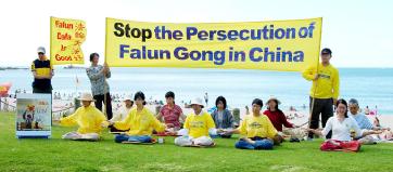 。特让嘎风景秀丽,民风淳朴,每逢节假日大量游客涌向这里,尽情享受阳光海浪沙滩。学员们祥和的功法展示使人们感受到法轮大法的美好,发生在中国的