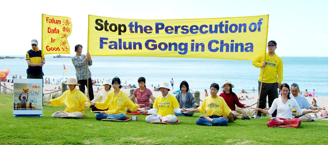 中使馆把迫害延伸至海外 新西兰法轮功学员抗议(图)