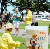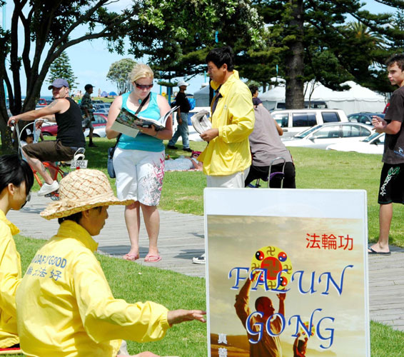 真相令人们震惊。很多游客认真阅读收到的真相资料,当地报纸对学员进行了专题采访。