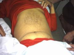 ![]() 赵凤莲后背上的疤痕 | ![]() 赵凤莲前胸上的疤痕 |