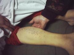 ![]() 赵凤莲腿上的疤痕 | ![]() 赵凤莲在金川公司职工医院内科 |