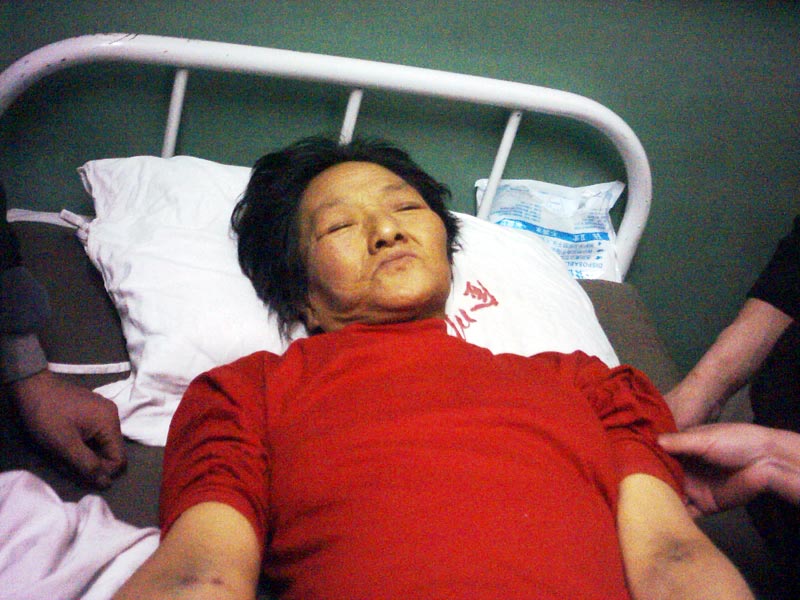 在这个过程中,赵凤莲提到被非法关押在甘肃省女子监狱有一位70多岁的同修,因患结石,监狱不得不送同修到医院治疗,手术做完,人还没有完全好,就又被甘肃省女子监狱抓回去了。
