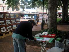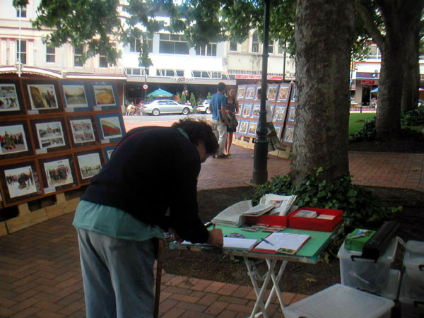 ![]() 在茵沃卡格市第一位来参观的华人 | ![]() 茵沃卡格市民在听学员讲解图片中显出的法轮和能量场辉光 |