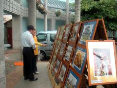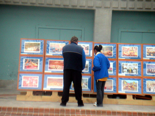 摄影图片中学员们祥和平静的炼功场面,也吸引了不少人驻足观看。其中有些照片展现出了大法的神奇,比如照片中的法轮和强大能量场发出的辉光,都令参观者称奇。