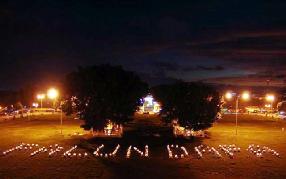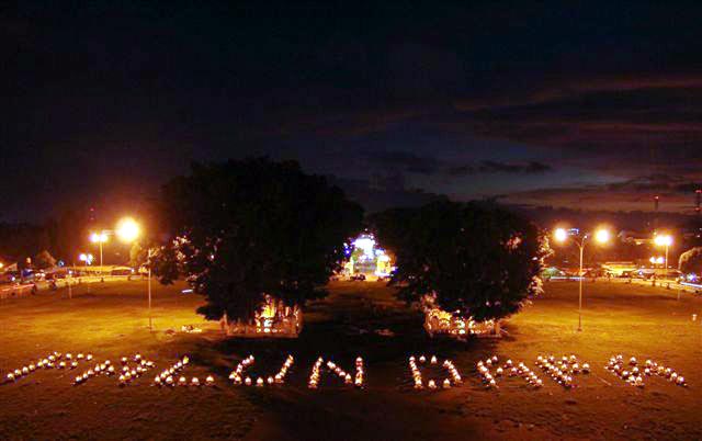 ![]() 一盏盏烛光摆出了英文的“法轮大法” |