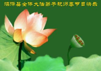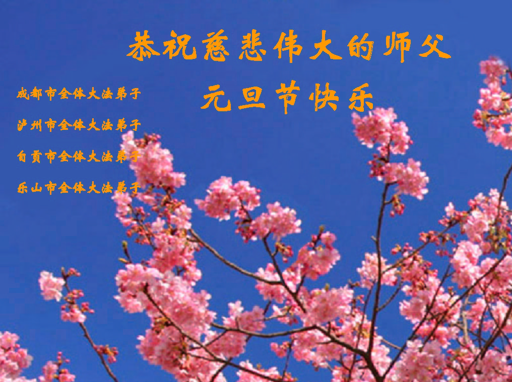 至尊至敬的师父:您好,我们京山县全体大法弟子恭祝师尊新年快乐。一晃邪恶镇压已经6年多了,我们在摔摔打打中度过了这6年,这其中不知渗透着多少师尊的关爱和呵护,谁言寸草心,报得三春晖!师尊说过:我什么都不要,只要我们那颗向善的心。我们唯有精進报答您那绵绵不绝的慈悲。