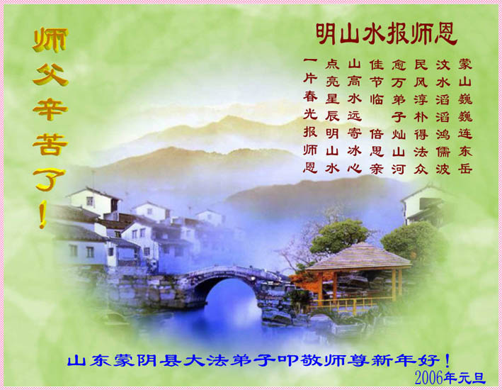 2006年新年之际,河北三河市大法弟子从心底道一声:师父您辛苦了!弟子想念您!