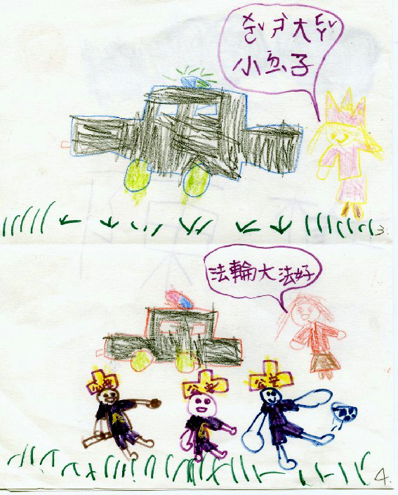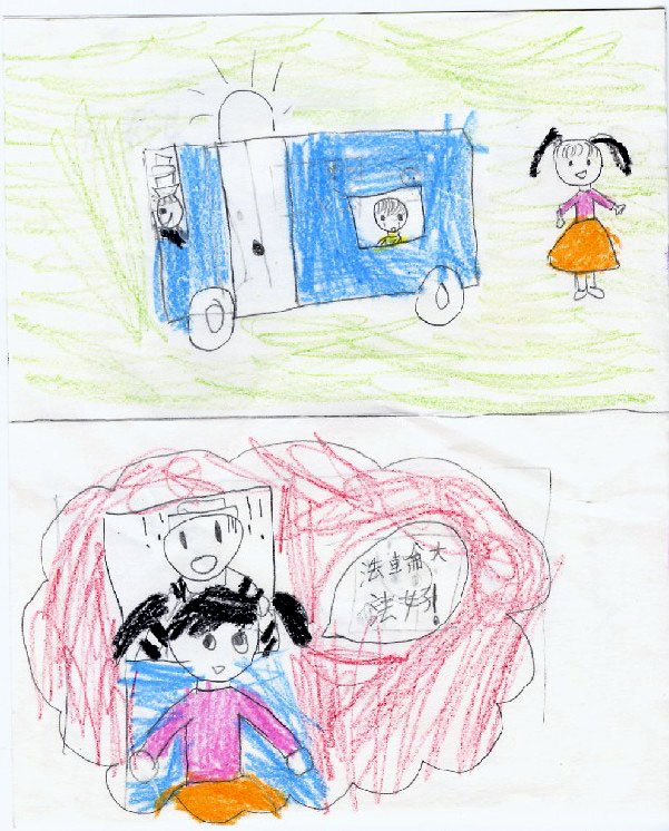 正在画图的小弟子们闻言都问:“那后来呢?她有没有被抓……”老师说文章中说当时刚抓完一车大法弟子的警察是沉默的,但是小女孩后来去哪里呢?她还有没有钱生活跟吃饭呢?她会不会回家?家里有没有被查封?回家以后还有没有亲戚邻居肯照顾她?她又会不会照顾自己?这些问题我想我们现在还无法知道……,如果我们现在不为他们做什么,那么这些数以百计、数以千计无辜失去父母的孩子,就只能这样无声无息的慢慢消失在茫茫人海里了……