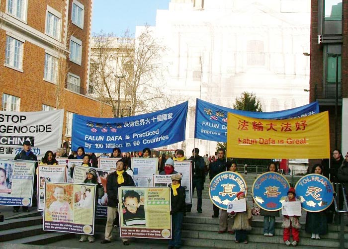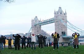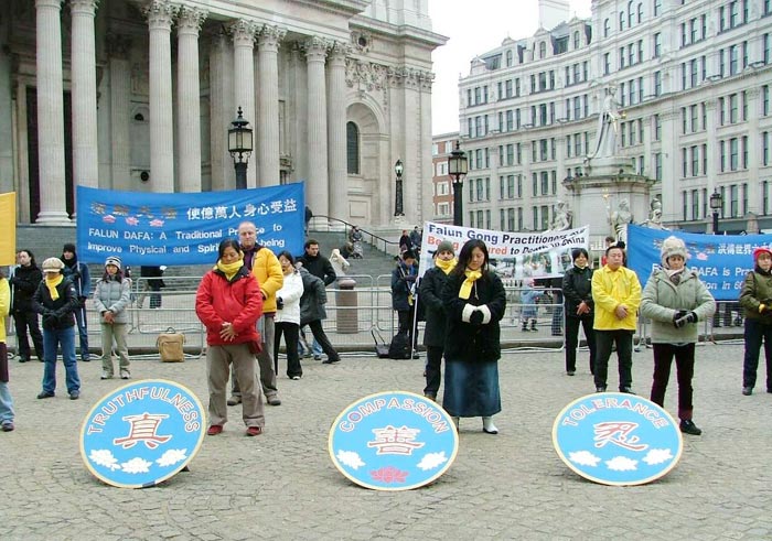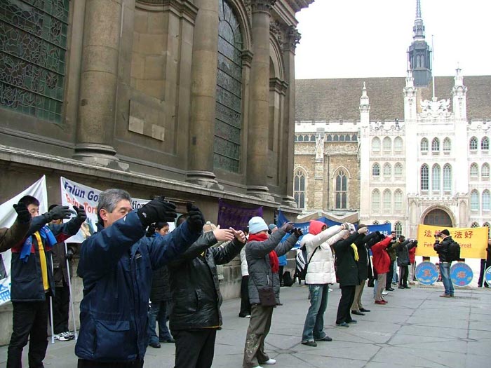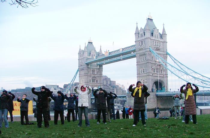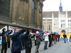 ![]() 圣保罗大教堂前炼功 | ![]() 在市长办公楼前炼功 |