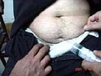 对抵制迫害,绝食的法轮功学员,恶警采用强制手段,野蛮灌食。灌盐水,用煤气罐的粗硬管子从鼻孔硬插进去胃部,还要故意来回拉塞几次,折磨学员,学员往往被捅破食道、有的气管、肺都被插伤了、甚至被灌死。
