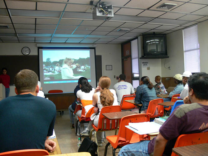 2005年秋季,Mary McKinney 教授的宗教课有四个班,每个班有大约30个学生,所有的学生都有幸了解了法轮功真象,他们提出了各种各样的问题,看得出他们严肃及渴望的眼神,他们想知道如何去做以帮助制止迫害。当随着学员的功法示范学炼动作时,学生们很兴奋也很认真,他们说“太美妙了”,还有两个学生说他们“感到了法轮的旋转”。